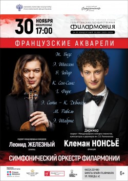 Дорогие меломаны и ценители прекрасного! Приглашаем вас на концерт – музыкальное путешествие по Франции, где каждое произведение подобно акварельной зарисовке, в которой настроения и смыслы переплетены. В рамках программы Министерства культуры РФ «Всероссийские филармонические сезоны» Симфонический оркестр филармонии под управлением французского дирижера Клемана Нонсьё и с участием солиста Леонида Железного подарит вам вечер утонченной элегантности и глубоких чувств.