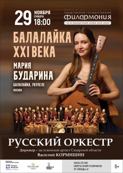 Балалайка – один из главных символов русской культуры, инструмент с богатой историей. Но ее звучание может быть переосмыслено и в современном контексте. Мария Бударина – яркая молодая исполнительница из Москвы, способная доказать, что для балалайки в музыке не существует границ, и в умелых руках ей доступен любой жанр. Вы убедитесь, что балалайка — инструмент, способный удивлять. Даже наш оркестр выступит в непривычной для себя роли – он будет петь! Концерт обещает быть интересным событием для любителей музыки всех возрастов и не по-осеннему жарким.