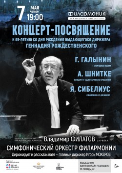 Концерт откроет «Эпическая поэма» Германа Галынина — композитора трагической судьбы, чей талант успел раскрыться лишь в нескольких сочинениях. Рождественский всегда тянулся к забытым страницам партитур, возвращал на сцену произведения, годами пылившиеся в архивах. Выбор этой поэмы — дань его просветительской миссии. Затем в исполнении оркестра и лауреата международных конкурсов Владимира Филатова прозвучит Концерт № 4 для скрипки с оркестром Альфреда Шнитке. Именно под управлением Рождественского состоялась премьера Первой симфонии Шнитке, и долгие годы дирижер оставался главным проводником необычной музыки этого автора. Скрипичный концерт — голос творческого союза двух великих современников.