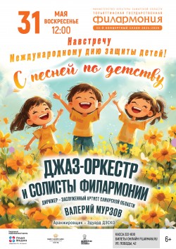 В преддверии Дня защиты детей Джаз-оркестр Тольяттинской филармонии под управлением заслуженного артиста Самарской области Валерия Мурзова представляет концертную программу для всей семьи «С песней по детству». Это будет большой и яркий концерт, в котором на сцене большого зала споют в стиле джаз юные вокалисты.